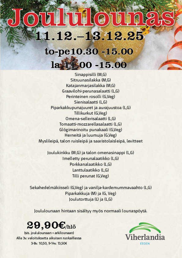 HUOM! Lounas tarjolla poikkeuksellisesti klo 11-13.30.
